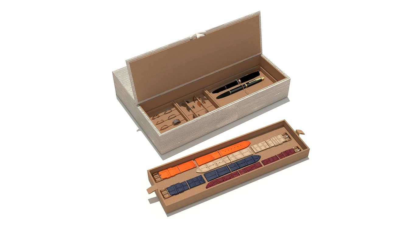 Having collaborated for several years with the prestigious watchmaking Maison VACHERON CONSTANTIN, I had the opportunity to design watch cases tailored for an exclusive clientele. These cases are intended to serve as storage, display, and a tray for watch customization, such as changing straps, as well as storage for other accessories like cufflinks, rings, or additional watch straps.